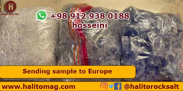 Shipping samples of Persian blue salt to Europe, blue rock salt full color, blue rock salt low color, persian crushed blue salt.